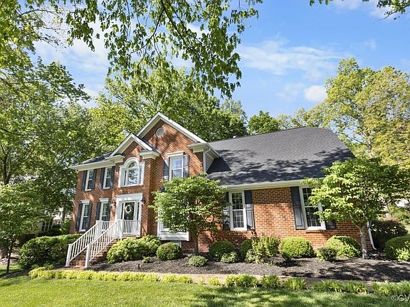 Beautifully landscaped, brick front home with dentil molding across the front, sits on a quiet, family friendly Cul-de-Sac. If you love seeing Hawks and Bald Eagles flying overhead while you relax on your deck, your family will love this neighborhood. This one-owner home is sure to impress. The Roof and Gutters were new in March 2025. The Hardwood Floors in the downstairs, two-story entryway opens up to the Living and Dining Rooms, all with detailed, Dentil Crown and Picture-Frame Molding. Large Family Room, with Gas Log Fireplace, Beamed Ceiling and custom Wood Blinds, opens to the rear deck. Cathedral windows let the afternoon sun shine in! Wainscoting gives warmth to this large room. The Eat-in Kitchen, with Granite Countertops, Raised-Panel cabinets, Picture-Frame and Crown Molding also opens to the deck. The Kitchen features GE & Bosch Stainess Steel appliances. Upstairs, the Primary BR features Crown Molding, dual Walk-in Closets and opens up to a wonderful bathroom, with Jetted Tub, Marble Shower, Cathdral windows with custom plantation shutters and dual, Granite topped Vanity Counters. The recently renovated Hall Bath features Granite Countertop and Tile floors, walls and Shower. The Detailed cabinetry in this bathroom was custome built and is sure to impress! The additional 4 BR's are bright and have lots of Closet Space. Also on the second floor is the convenient Laundry Room, with Porcelain Tile Floor. The attic features a very large storage area. The oversized Garage offers plenty of storage and workspace. The large Deck features an aluminum Gazebo and will offer many years of relaxation and enjoyment. The beautiful yard has a Zoned Irrigation System with a modern, WI-Fi controlled Rachio system, which monitors local weather conditions to control watering. No HOA and the Community Pool is walkable. Top-Rated Schools.