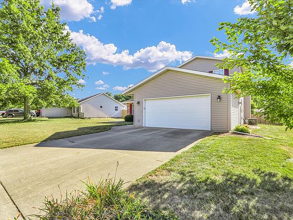 This beautifully maintained home in the sought-after Riverview subdivision of Mahomet is ready for its new owners. From the moment you enter inside, you'll be welcomed by rich Luxury Vinyl Plank flooring that flows through the entry, hallways, dining room, kitchen, and family room, complemented by plush, soft carpeting in select areas. The open-concept kitchen is perfect for gatherings, featuring updated Corian countertops, and stainless steel appliances. A spacious walk-in pantry provides even more storage convenience, making meal prep and entertaining a breeze. The family room is the heart of the home with its inviting gas fireplace framed by a striking floor-to-ceiling custom stone surround. Also on the main level, you'll find a bedroom and a beautifully updated full bath. Upstairs are three additional bedrooms, including the primary suite with two closets-one being a generously sized walk-in. That's not all! Have you seen the backyard? Enjoy the large fenced backyard, complete with a thoughtfully designed brick-paved patio, perfect for relaxing or entertaining. A recently refreshed 12x8 garden shed and a newer cedar picket fence add both function and charm. The heated garage provides additional storage, while Andersen windows throughout the home-enhanced with storm windows-add lasting value. Notable updates include a new roof in 2009 and a full suite of newer kitchen appliances: microwave (2022), oven/electric range (2022), refrigerator (2024), dishwasher (2024), and garbage disposal (2024).This home offers the perfect blend of comfort, style, and functionality. Don't wait-schedule your private showing today!