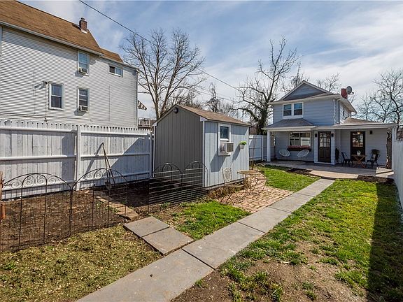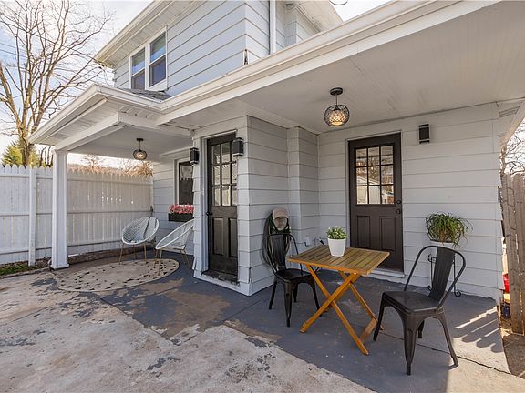 Fresh, bright, and beautiful! This remarkable modern farmhouse has been thoughtfully renovated to maximize comfort and style. A long, set-back yard greets you with a garden and fantastic hobby shed (complete with A/C!), and the oversized covered patio is the perfect place for morning coffee or happy hour with friends! Step into the spacious living room, finished with sleek hardwood floors, recessed lights, and an electric fireplace. The dining room boasts elevated finishes with designer lights and a custom accent wall. Modern kitchen is fully equipped and sure to inspire with stainless appliances and bold backsplash. Upstairs two spacious bedrooms offer space to relax, with custom closets! Modern, updated bathroom makes getting ready a breeze. Don't miss the party space in the fully waterproofed basement, complete with a projector and wet bar! Comfort and convenience with central A/C and off-street parking. Move right in and plan your housewarming party!
