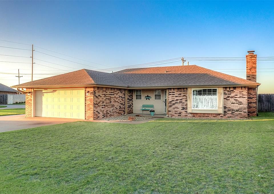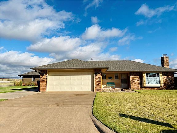Nestled in an enviable neighborhood, this remarkable home has undergone a recent transformation and is ideally situated just 2 miles from the golf course, with picturesque walking trails nearby. Tucked away in a serene cul-de-sac, this residence features a generous living space with a cozy fireplace. The master bedroom offers a newly updated private bath, and a practical small shop building with overhead doors & concrete floor graces the backyard. For added peace of mind, there's a storm shelter thoughtfully placed within the garage. NEW ROOF and Gutters in July 2023.
