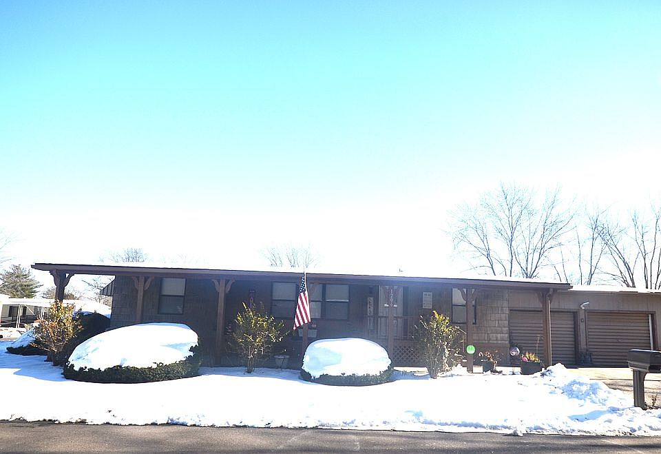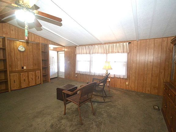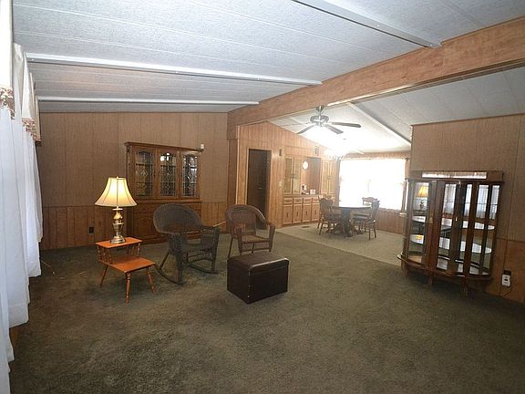 Southern Illinois Realty presents this rustic looking manufactured home located in Dutch Hollow Village. Great curb appeal sitting on a large corner rented lot. Nice front porch welcomes you into this lovely home. Large great room open to the dining room and kitchen. Dining room has built in cabinets and the spacious kitchen has all appliances. Just pass the kitchen is a nice laundry room with cabinets for storage. Primary suites on each end with full baths in each. The home is a 1982 Fugua and the lot rent is $625/month and includes water, sewer and trash. This lovely home is move-in ready and priced to sell. Owner occupants only, No Investors. Financing is not available.