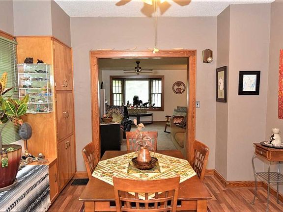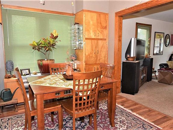 Don't miss your chance to make this 2 bedroom, 1 bath house your home! This all brick house has had several updates inside! Stepping in through the front door into the foyer entrance, you'll love the large living room and open floor plan! Located between the living room and kitchen, the dining room is perfectly situated for entertaining, and offers built-ins with a window seat. The kitchen comes equipped with included appliances and opens to the covered back porch for outdoor dining in the summer. The bathroom has been nicely updated with a tiled shower and newer vanity. An unfinished basement offers additional space for storage and includes the washer and dryer. The backyard has lots of lovely landscaping and an additional covered patio off the 1.5-car, detached garage (being sold as-is). Check this one out before it's gone!