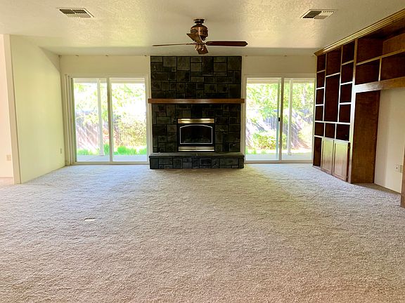 Located in Southdown Estates, this single level, one-owner 1826 sqft home features spacious living areas, high vaulted ceilings, and plenty of storage. Inside, the interior has been freshly painted and new carpet installed throughout; 3 bedrooms, 2 baths, a formal dining and living room with slate surround gas fireplace, built-in shelving, custom wood shutters on windows, and several dual sliders to the large covered back patio where you'll find a low-maintenance outdoor space with a custom deck surrounded spa just steps outside the Master Suite. To the front of the home you'll find a spacious yard and just down the road, a pond private to this established community.