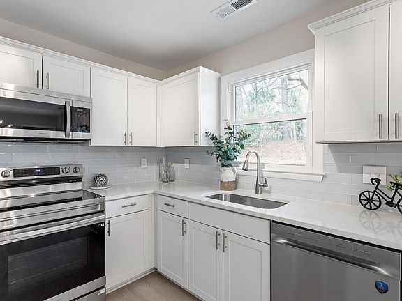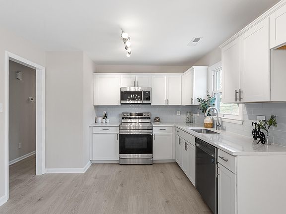 Cute as a button Ranch on charming tree lined street with custom kitchen and all the upgrades. Open kitchen features granite counters, tile backsplash and stainless steel appliances. Wide plank laminate hardwood flooring throughout main living spaces; PLUSH carpet and designer interior/exterior paint. New windows in 2025. Convenient to Downtown Raleigh, Garner, White Oak shopping and restaurants. Move in and enjoy!