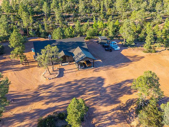 Experience peaceful living among the tall pines! Built in 2020, this beautiful 4-bedroom, 2-bath home sits on 5 private acres with no HOA. The spacious, open floor plan features a modern kitchen with quality finishes and plenty of storage, perfect for entertaining or family living. A cozy indoor fireplace creates a warm and inviting centerpiece for relaxing evenings. Enjoy the fresh mountain air on the covered patio or explore the property's natural beauty. With RV parking and ample space for all your toys, you'll have the freedom to live the lifestyle you want. Located in the scenic southeast area of Payson, this home combines privacy, comfort, and easy access to town amenities—your ideal mountain retreat awaits!