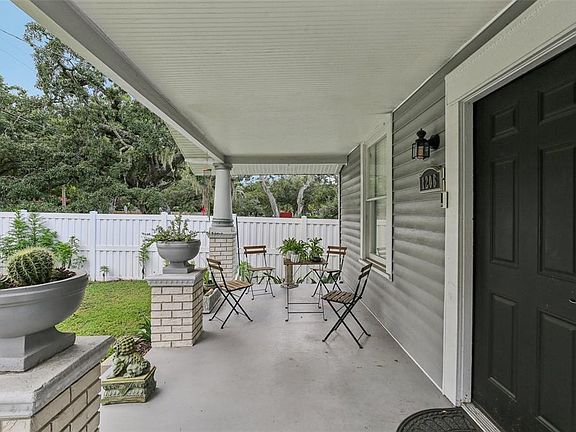 Discover this beautifully remodeled 1928 bungalow in the highly desirable Seminole Heights neighborhood. Enjoy a modern kitchen featuring crown molding, durable vinyl laminate flooring, and a new laundry room. The living room, dining room, and hallway boast elegant hardwood floors, complemented by charming original cabinetry. The bathroom has also been updated for your convenience. Step onto the spacious front porch, perfect for relaxing and chatting with neighbors. Freshly painted inside and out, this home includes a new A/C (2021), water heater (2021) and new roof on home and garage (2025). The expansive backyard is ideal for your furry friend or entertaining guests, and there's a one-car garage with a large planter bed next to it—perfect for a vegetable garden! Just a short walk away, Giddens Park offers a fully equipped playground with a splash pad, interactive fountain, sports courts, and ample green space. Enjoy quick freeway access and proximity to attractions like Lowry Park Zoo, Busch Gardens, Adventure Island, and the Channelside District. All room sizes are approximate; buyer to verify for accuracy.