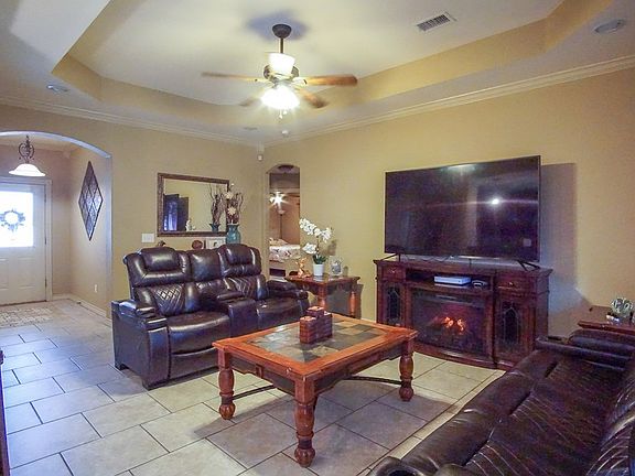 Super cute and cozy house with beautiful details. Custom wood cabinets and tile throughout the house. Granite counter tops in kitchen and stone under the kitchen bar. Beautiful crown molding in the living room. Vaulted ceiling in the master bedroom. Master bath has walk in tile shower, custom wood linen cabinet and walk in master closet. Solar panels on home make this super energy efficient.
