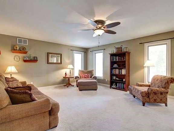 Great opportunity to have small town living in Towanda but within 20 minutes of Wichita. Wonderful 5 bedrooms, 4 bath home sitting on over 1/3 acre. Master bedroom is on the main level with an in-suite bath with separate whirlpool tub and shower, long vanity and a walk-in closet. Two more LARGE bedrooms are at the top of the stairs with their own 11x9 bath. The fourth bedroom is located at the opposite end of the home over the garage which allows for a lot of privacy and is perfect as a guest room, teenagerâs room or in-laws suite. The Kitchen is a cooks dream with a large pantry, 2 corner lazy susan cabinets, massive counter top work area, and a gas 5 burner stove. The kitchen and dining are open so family or guests can gather in the dining area or at the eating bar for entertaining. The view-out finished basement includes a family room with a wood pellet stove, the 5th bedroom (which is currently being used as a game room), and an office with built-in desk/counter on 3 walls, plus another full bath. The mud room, main floor laundry and 4th bath are located by the oversized 2 car garage entrance. The garage has insulated garage doors and a man door to the backyard. Enjoy your evenings on the front porch or the large backyard deck. The backyard has raised garden beds at the back of the property, and a fire pit area. The total yard is covered by a sprinkler system. This home has big rooms, large closets and good storage plus all windows are Pella casement with blinds in the middle.