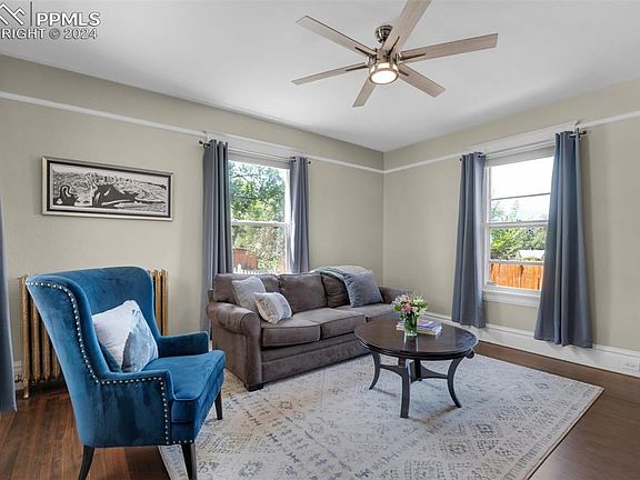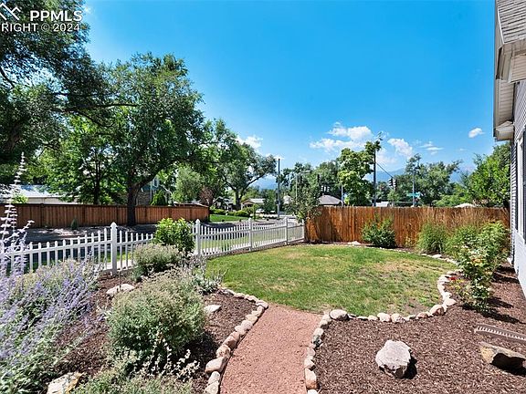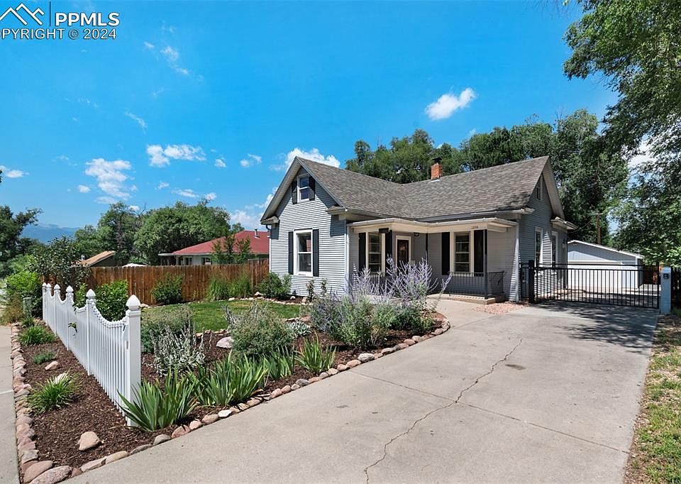 The perfect blend of classic and charm exude in this two-story residence located in a prime, central location close to Old North End and Patty Jewett Golf Course. Large, fully landscaped lot with privacy gate to the detached 572' oversized 2-car garage with workshop, complete with a separate electrical meter. A charming white picket fence and classic covered front porch, provide a warm welcome to a lovingly cared for, established home featuring a flexible floor plan that includes a delightful blend of vintage charm & thoughtful modern elements throughout. Enjoy the home’s newly refinished beautiful hardwood floors, tall baseboards, updated fixtures, and vintage doorknobs and hardware. The chef-worthy kitchen boasts timeless white cabinetry, modern stainless steel appliances, including a gas range and desirable vent hood, both granite and butcher block countertops, and an open pantry with ample creative shelving for extra storage. The main-level primary bedroom offers custom-designed closet spaces and connects to the spacious bath with heated tile flooring and an amazing walk-in shower, featuring a bench seat and pebble rock base. The fully finished upstairs level features two bedrooms, two closets, an additional open space for extra storage, and a loft area that would make a great office or play area. Unfinished basement with tall ceilings offers laundry connections, a utility sink, & space for storage or flex spaces. Oversized, private backyard is great for hosting get-togethers on the lush lawn or spacious stamped concrete patio with mountain views and large mature trees nearby for plenty of shade and privacy. Noteworthy new updates include freshly painted walls and trim, water and heating system replaced with 200,000 BTU combination gas boiler and radiant heat system. Minutes from downtown Colorado Springs, coffee shops, trendy restaurants and groceries. This lovely move-in-ready gem is a must-see and ready for you to call it home! 3 virtually staged photos used.