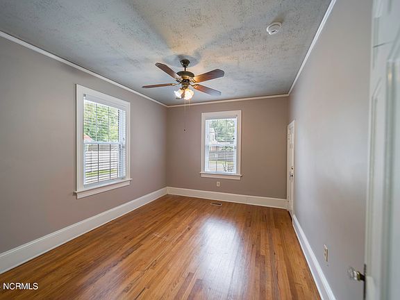 Charming 4-bedroom, 2-bathroom brick bungalow in Goldsboro, NC, just minutes from downtown. This delightful home features beautiful hardwood floors, a bright living room with a fireplace, and a versatile sitting room perfect for an office or flex space. Enjoy meals in the eat-in kitchen or formal dining room. The main floor offers a convenient laundry room and a sunroom for relaxation. Upstairs boasts 3 bedrooms, a renovated bathroom, and a spacious hallway walk-in storage closet. The home includes a whole house generator, a huge concrete driveway, and a unique exterior spiral staircase to the second floor. Renovated bathrooms add modern comfort to this classic home. Make this house your next home! Schedule a showing today. Home will be sold as is.