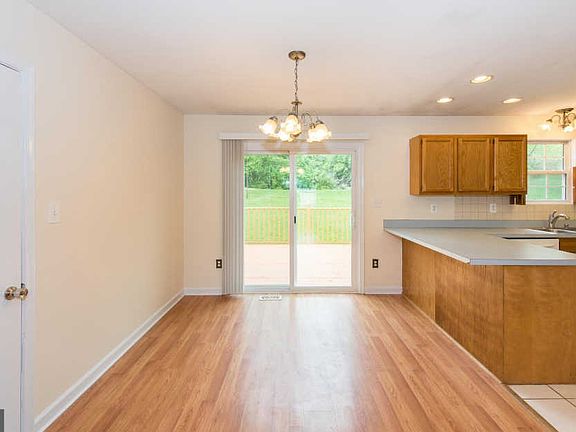 Amazing tree-lined setting in private cul-de-sac sets the stage for this stunning split level.W/ distinctive interiors, this home features main level living room,dining room w/ glass slider to tiered deck & fully appointed KIT w/ ceramic tile,recessed lighting, crisp white appliances.Downstairs family room features wood stove, wet bar, 1/2 bath & glass slider walkout to patio,fire pit & large BY.