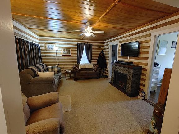 This cabin/home sits on almost 1.5 acres with a stream and a beautiful back patio. This is a 3 bedroom 1 bath home with many improvements. Basement walls have been redone, bathroom was enlarged, the countertop in the kitchen has been upgraded to Corian and moved to make more usable space. There is a new sandmound put in appox. 3 years ago and the well has a new foot pump. Some of the furnishings will be staying. (Kitchen table, 1 bed, 2 dressers and 2 wardrobes, electric fireplace, TV, deck chairs) This property has been maintained and upgraded to make the perfect, worry free, cabin/home for you.