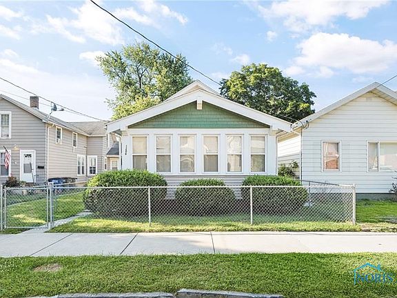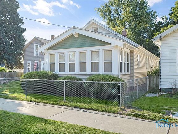 Add your cosmetic updates and move right in. Mechanical updates - furnace 4 yrs old, replacement windows in enclosed porch, new sewer line connection, copper water line from street to house, 100 amp updated wiring. Great storage in kitchen with oak cabinets. Fenced in private yard. Enclosed front porch is perfect for an office, toy room or extra living space. Large storage building as well as alley access parking. Close to Raymer elementary, Glass City Metropark and downtown.