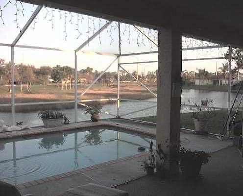 Nice pool with beautiful lake view and screened in patio. Master bath has a private sauna.