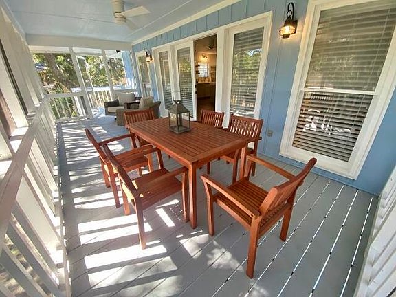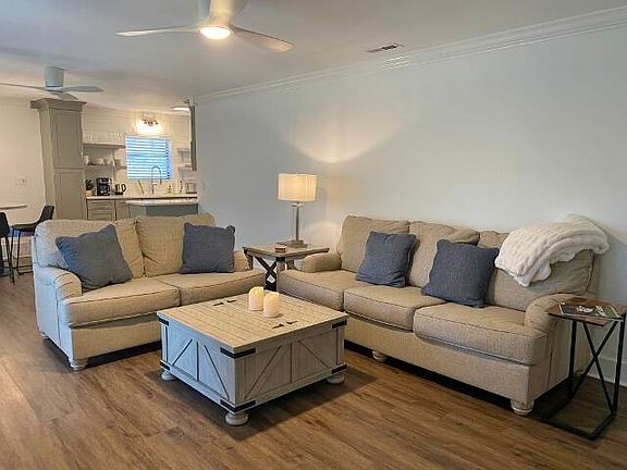 Coastal fully furnished 2 Bedroom, 2 full bath with additional private room for study, game room, or bunk room. This is the dream home you have been waiting for. Home was completely renovated with new - Luxury Vinyl Plank Flooring, Pex wiring, appliances, furniture, fixtures, hardware, blinds, built-in closets, baths redesigned, repainted inside and outside, ceiling fans, smooth ceilings, kitchen redesigned with granite countertops, cabinets, lighting, outside enclosed shower, exterior lighting and more. Fogged window glass is on order and will be replaced. Home is tucked among mature live oaks, palmettos, magnolias, and other mature coastal foliage. Full screen porch on rear overlooking large lagoon for fishing, shrimping, crabbing, or relaxing in the coastal sea breezes.entertaining area, and large storage room finish up this perfect dream home. Home lives large with the rooms we live in outside. Underneath parking, Once in a lifetime opportunity. One lot to access street to enjoy the beach, restaurants, shopping and more.