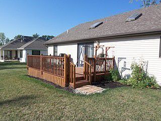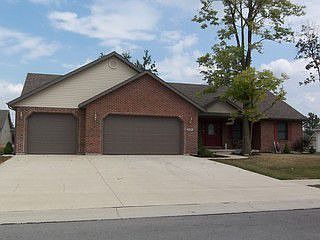 CUSTOM BUILT RANCH--BUILT NEW IN 2004. Features 6 panel oak doors, ceramic tile, split bedroom design, cathedral ceiling with 2 skylights. Master bath hosts a whirlpool tub and walk-in closet. Large covered front porch, nice deck off the dining room. 3-Car attached garage, located on cul-de-sac street. Brick and vinyl with nice sized lot. 1995 SQ. FT. RANCH PRICED BELOW REPLACEMENT COSTS! Storage shed will stay with property. IMPROVEMENTS: Shower door for master bath, post & spindles for deck, seal, insulate air & heating ducts, gutter guard for spouting, NEW skylights, ventless gas heater in garage.