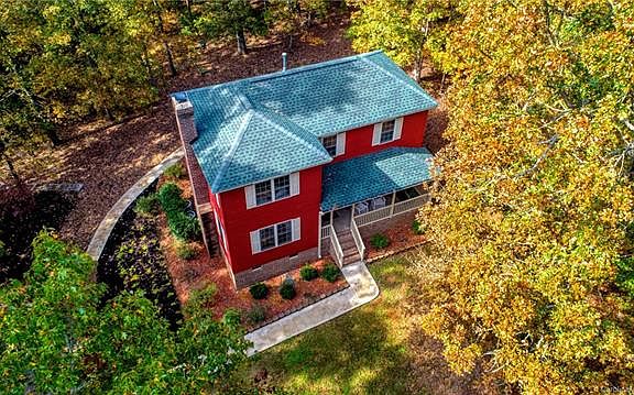 Charming solid built home with farmhouse setting in woods on 1 acre private lot, yet convenient to hospital, schools, restaurants, and shopping. Rocking chair front covered porch to have your morning coffee and back deck to enjoy the serene views of nature after dinner. Bedrooms and living/eating spaces are all generous in size and showcase beautiful real hardwoods. Master Bdrm can be downstairs or upstairs, depending on preference. Laundry Rm has built in cabinetry & access to back deck. Kitchen has beautiful over-sized bay window at breakfast area overlooking a scenic view of your backyard. Great Rm has a vented Vermont casting gas log burning stove. Upstairs bedrooms have good closet storage space. Low county taxes. No HOA. Carport has rear storage shed which is great for extra storage or projects. Seller providing home warranty w/ Home Buyers Resale Warranty Corporation not to exceed $496.39(w/tax). Kangen water ionizer @ kitchen sink does not convey. Washer/Dryer to convey.