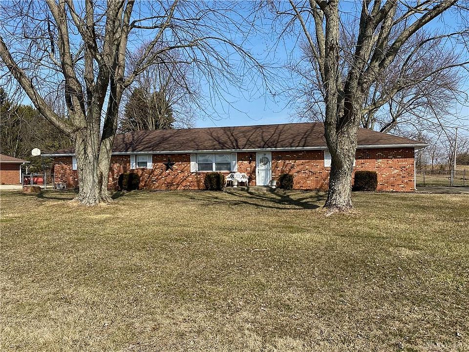 Don't miss out on this beautiful brick home in a great central location between Springfield and Urbana, with (3) Bedroom, (2) Full bathrooms, everything is one floor. Fresh Paint in Living Room, Dining Room, and both bathrooms. New added insulation in attic. The home features a very large Living Room/Family Room, an open kitchen and dining room area, master bedroom with attached master bathroom, a large utility/ laundry area and an attached garage with extra space for work benches, a covered rear patio, oversized lot (nearly 3/4 of an acre per auditor records) fully fenced backyard. All bedrooms, living room and dining room have ceiling fans. House has a built in whole house fan. All appliances stay, Refrigerator, Range, Washer/Dryer, Microwave, Water Softener Property is being sold 'As Is, Seller will make no repairs'. Part of oversized living room was originally a 4th bedroom This will not last long- hurry!Seller is a relative of the listing agent.