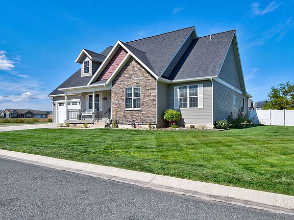 Tastefully finished turnkey home with curb appeal. This north valley home in highly sought after Bridge Creek Estates, is a convenient drive to I-15 and 10 minutes to Costco. Jim Darcy school is within walking distance along with Bob's Valley Market. The property has a level manicured irrigate lawn, beautifully fenced back yard, dog kennel and a covered back patio that is perfect for summer BBQ's. A detached 2 car shop with bonus studio offers plenty of room for your extra toys and hobbies! Inside the home you'll find new LVP flooring, freshly painted walls, updated primary bedroom and bathroom. The floor plan of the home is open and functional. Its main level also features a natural gas fireplace, eat in kitchen, formal dining room, 9 ft ceilings, 3 bedrooms and 2 bath, window coverings, laundry room, and a central vacuum system. Upstairs is a bonus room that could be used as a 4th bedroom/suite or as a 2nd living area. This home has so much to offer to its new owner!