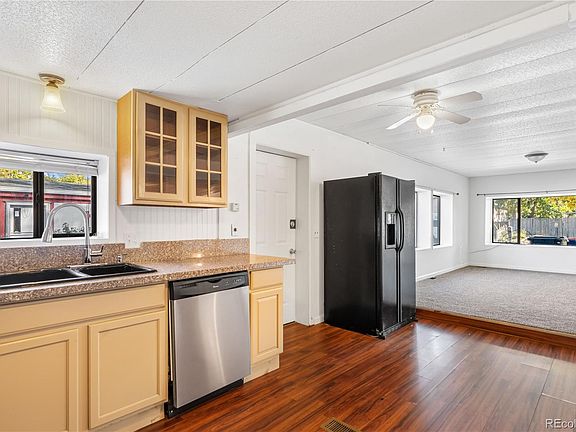 Beautifully remodeled 4 bedroom, 2 bathroom home in the Glens of Dacono. 1970 built home offers rare 2017 square feet with 4 beds and 2 baths on one side of the home. This will easily rent for $2200 all day. Enormous living room and kitchen as well as a bonus sun room/office off of the living room.The home features an open floor plan with newer remodeled kitchen featuring painted cabinets, granite counters, laminate floors and newer appliances . There have been many additional updates including new interior paint and 4" trim, new doors all laminate and new carpet throughout, updated bathrooms, new exterior paint and new lighting, All this with double pane windows and no maintenance wood siding. Property features super large lot with ample off street parking and fully landscaped. Come see it for yourself. NO LOT RENT.This is not a trailer it is Mfg home on permanent foundation.Will not last. Multiple Financing options for pre 1976 mfg homes please contact listing agent for info.