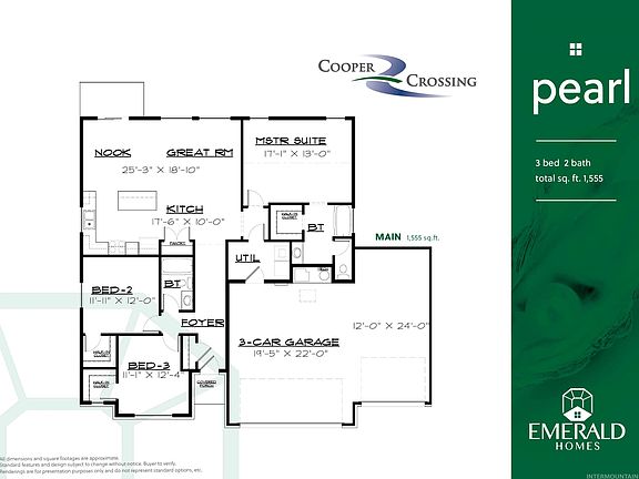 Welcome to the "Pearl" in Parma's newest subdivision, Cooper Crossing. Built by Emerald Homes, this 1555 sf single level home offers 3 bedrooms, 2 baths & 3 car garage with space for all your outdoor toys. The foyer entrance opens into the great room area allowing for an open concept with a vaulted ceiling & views to your backyard. The kitchen boasts a large island, breakfast nook, & pantry. The split bedroom is designed for privacy in the master suite and with bedrooms having walk-in closets. $5k Builder incentive with accepted offer! *Photos similar*