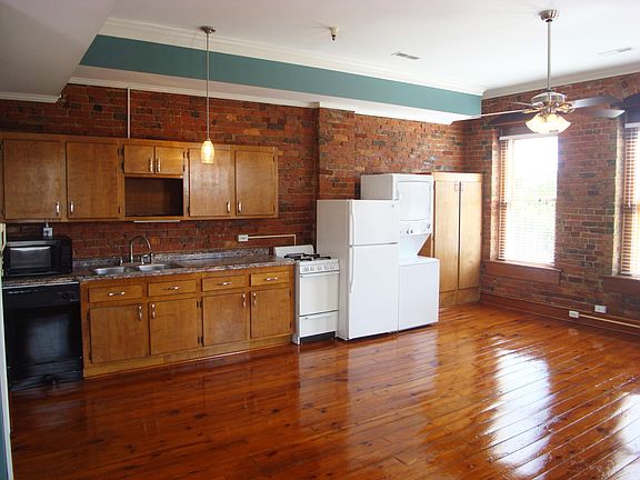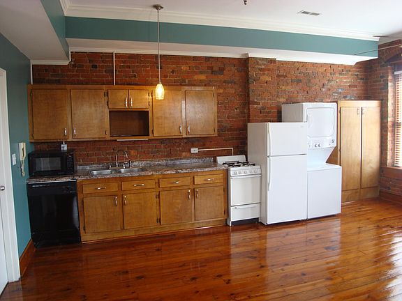 Historic Downtown Lynchburg Loft with brick walls, hardwood floors, and dedicated on-site parking space. (Water, Sewer and trash included.) Assigned parking space included!! (behind building) Very convenient! Enjoy downtown living at its best! Located directly across from Community Market, you'll be right in the middle of it all-- downtown restaurants, businesses, theaters, green grocer, and more! This open floor plan provides an easy and comfortable living environment and features large windows overlooking The James River. Fabulous brick walls & hard wood floors highlight the historic charm. Large windows (interior storms provide better insulation) offer spectacular views and bright light. You really must see it to believe how comfortable downtown living can be. Work downtown? This is an ideal location! Walk to work without the worries and cost of parking. 580 square feet Loft Common area in the building features mailboxes and bike racks. No Smoking Allowed. Interior & Exterior Features Appliances: Range, Refrigerator, Countertop Microwave, Dishwasher, Stack Washer/Dryer Exterior: 1 Dedicated Parking Space Included with Rent Interior: Brick Walls and Hardwood Floors Tenant Responsibilities: Electric, Gas Pet Restrictions: Small Pets Allowed on a case by case basis. Additional Pet Deposit and Pet Rent may be required. Utilities Water: Included Sewer: Included Trash: Included Heating: Gas A/C: Central Air Parking: 1 assigned space included Water, sewer, trash and assigned parking space included.