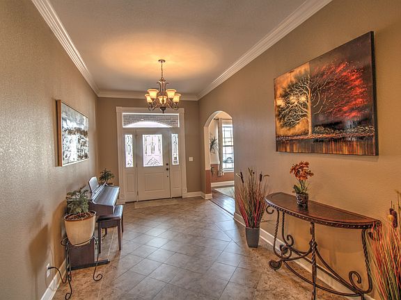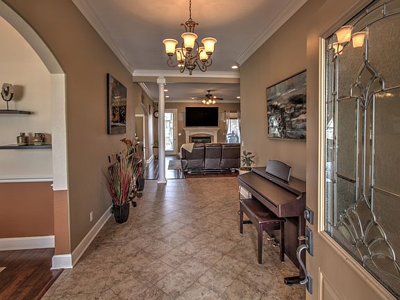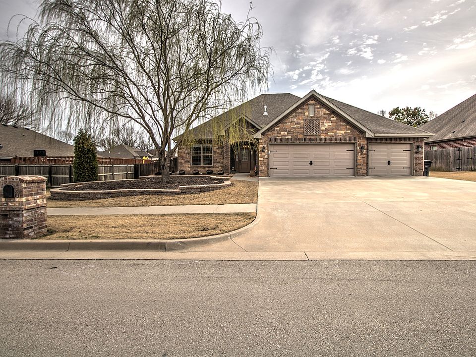 Builder spared no expense filling this home with extra heavy double molding, granite, hardwood flooring, vented hood with wood cabinetry, custom cabinets, massive kitchen with island and bar for gathering, open to the living room with gas log fireplace, screened in porch, landscaped front and back lawn, 3 car garage with storm shelter in garage floor, 4 Bedrooms, 3 full baths, formal dining room.
