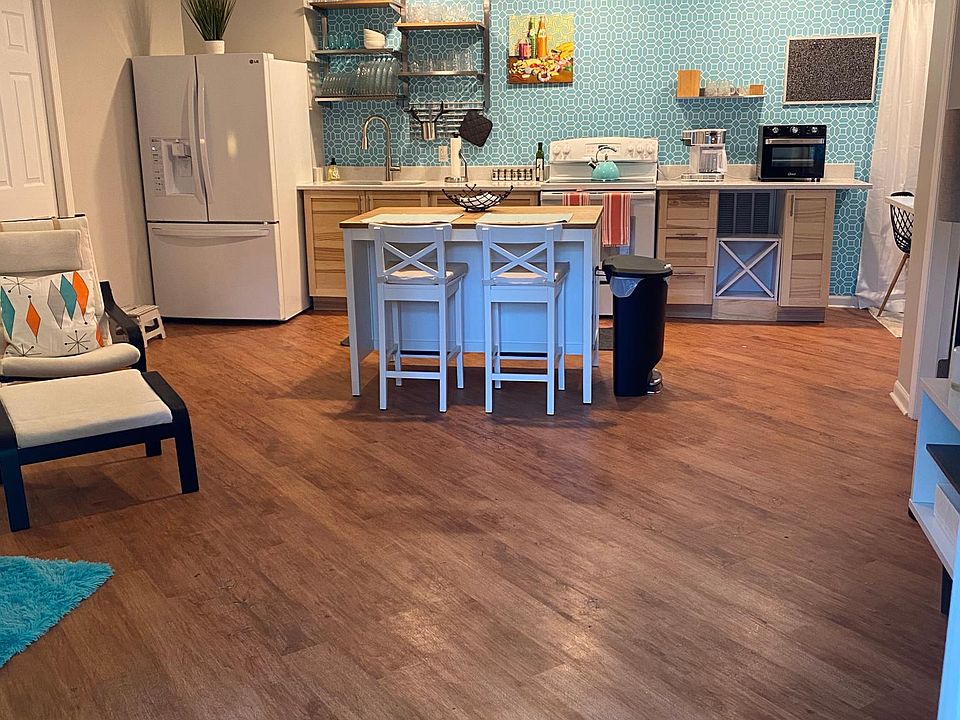 Furnished short term rental. Minimum 3 months. All utilities are included. Shared laundry room. Private entrance with large deck and fenced yard. This is a basement apartment. Main bedroom has a queen bed. 2nd bedroom has a full bed. Full kitchen with dishes and cookware. Linens included. Perfect for travel nurses or corporate rental. Located in one of the safest small towns in SC. The community has a public golf course, restaurant, tennis, sports complex and lake access. $29 application fee required, credit check and references. No dogs please, indoor cat considered. Owner lives upstairs. 3 month minimum lease required. Month to month thereafter with 30 day vacancy notice.