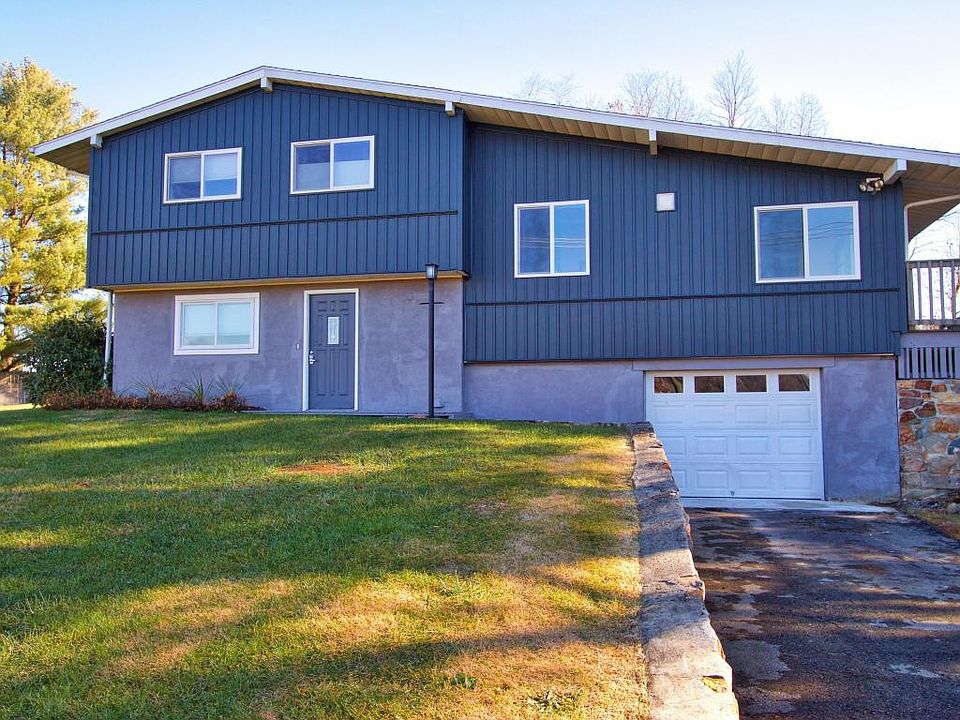 Enjoy open-concept living in this fully updated contemporary home on one acre in Blacksburg.Outside features extensive decking & patio areas. New siding which included solid-core insulation panels & a whole house wrap (R30 insulation)keeps you warm and cozy. Refinished hardwoods, cork, slate & ceramic tile floors. Fresh paint, new, modern lighting & a custom craftsman kitchen make this home feel brand new. Enjoy a master suite w/ double closets & a new, oversized shower & double vanity HUGE family room w/ cubby area & built-in office space w/ granite countertop. New architectural shingle roof in 2009 & new heat pump in 2013, Oversized single-car garage & plenty of additional parking. Pasture views along the whole front of the house. Be on the bypass or the heart of Blacksburg in minutes .