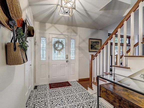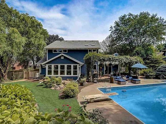Location, Location! This 4 bedrm, 2700 sq/ft 2-story is nestled on a quiet cul-de-sac in sought after Fox Ridge Middleton neighborhood! Private landscaped fenced lot w/serene 20x40 in-ground pool! Large great rm offers a striking beamed cathedral clg, solid 5/8" cherry hardwood floors & gas fireplace. Kitchen remodeled 3yrs ago w/new shaker cabinets, quartz counters, stainless steel appliances (all 2021 except microwave) & LVP flooring! Adjoining laminate family rm & wonderful 3-season porch overlooking the outdoor oasis-perfect for entertaining w/big patio, pergola, pond & perennial gardens for a tranquil setting! 3 bedrms up-Master w/cathedral beamed clg & laminate flooring. This beautiful transitional home has an inviting farmhouse flair, bring your swimsuit, you wont want to leave!
