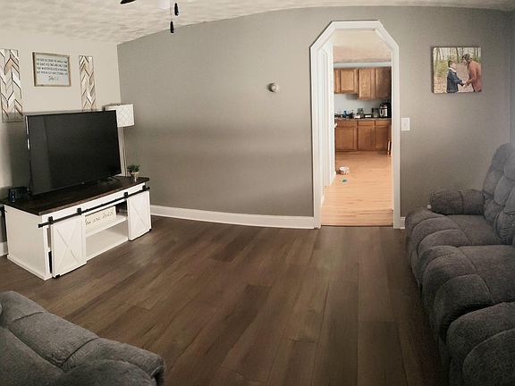 Nice 2 bedroom, 1 bath with garage. Move in ready. New roof, new well, bath redone, all new flooring with laminate and vinyl plank in bath. Bedroom has new drywall, doors, frames, and light fixtures. Newer oak kitchen, countertop and sink/faucets. Newer vinyl windows. Appliances negotiable (stainless range and refrigerator). Irregular 16x16 deck. Fenced yard. Great location outside city limits on a dead end private drive.
