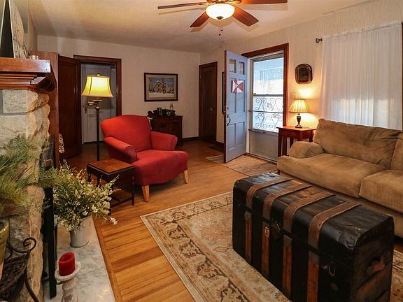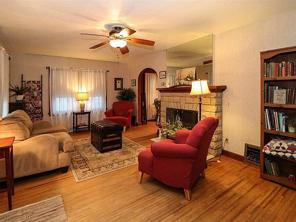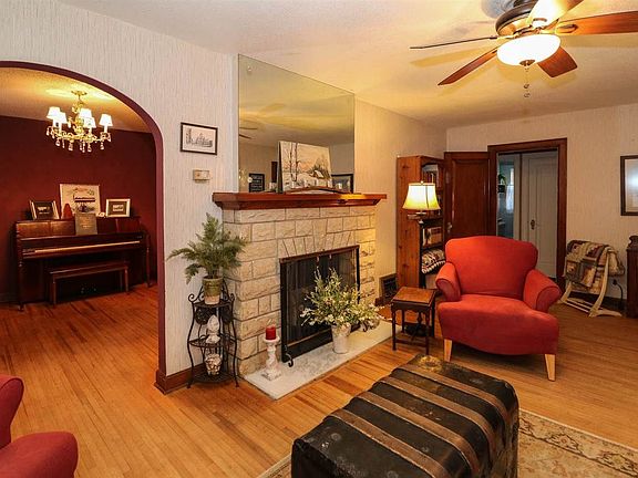Try Riverside living in a cute-as-can-be two bedroom, one bath ranch home! Expansive formal living, formal dining, finished basement family room (with second decorative fireplace!). Vinyl exterior siding, a detached one car garage, fenced back yard, nicely-sized patio, covered front porch and superb location! Be in the heart of things, but away from the traffic and enjoy the comfort and character of this home!