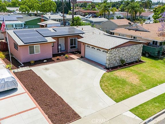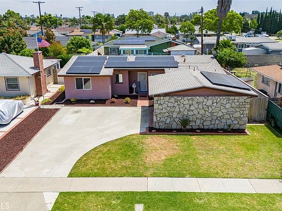 Nestled in the heart of Anaheim in a Great Neighborhood. This Single Story 4 Bedrooms, 2 Bath home Boasts a blend of convenience and functionality. With 1,449 square feet of living space and situated on a generous lot spanning 6,161 square feet, this home is a gem. It has a Large Driveway that can park 4+ Cars, Plus Potential RV Parking, and Solar Panels. Inside the Tract, it has Beautiful Curb Appeal, with Manicured Lawn and Landscaping. As you step inside, you are greeted by an inviting living room, with new flooring throughout the Main Living Areas, new baseboards, Dual Pane Windows, A/C, LED Recessing Lighting in Kitchen, Gas Cooktop, Oven, Dishwasher, and a sunlit Eat-In Dining Area with Light. Large sliding door windows that flood the space with natural light, creating an inviting space. Next to the living room, a separate dining area provides the perfect setting for hosting gatherings, featuring ample space for a large dining table. Spacious kitchen with direct access into the laundry room area into the 2 car garage. The bathrooms feature walk-in shower, and upgraded vanity in the guest bathroom, new mirror, along with a shower/tub combination. Step outside to the expansive backyard, with a nice size yard perfect for enjoying warm summer days with family, friends, and family pets. Sprinkler System Front and Rear. This home in Anaheim offers the perfect combination of comfort, style, and convenience. With its thoughtful upgrades, spacious layout, and prime location, this residence is sure to provide a place you'll be proud to call home. Central to Everything Orange County has to offer. Short Drive to Disneyland, Knott's Berry Farm, Angel Stadium, Indoor and Outdoor Shopping, Restaurants, Parks and Schools. Call today to schedule your private showing!
