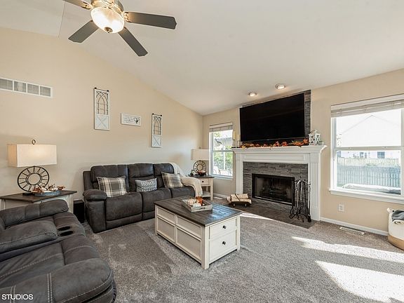 You will FALL IN LOVE with this beautifully maintained ranch home the second you walk through the front door! Upon entering, the generously sized foyer pulls you into the family room with direct views of your firepalce, flanked by large windows on each side. Perfect to snuggle up around on those chilly nights! You will love the vaulted ceilings and open concept flow of the main living space. The large kitchen has tons of cabinets, generous counter space, all stainless appliances, and a shared pass-through to the dining room with a built-in wet bar. Three bedrooms await you on the opposite side of the home. The Master bedroom has a private ensuite, complete with a jetted tub, separate shower, double sinks, and a large walk-in closet. Walk down the hall to a full main bath and 2 more good-sized bedrooms! Head down the stairs from the living room you will find a huge unfinished basement that is just waiting for your finishing touches! Outside is a large fenced yard and stamped concrete patio great for entertaining. Recent updates include a new roof, A/C, and water heater. Access to a beautiful walking path and park just a 1 minute walk away! Come take a look before it's gone!!