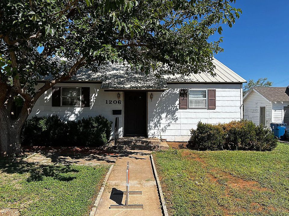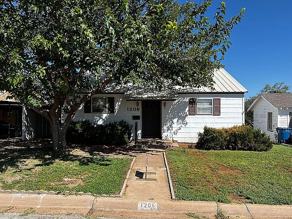 Cute 2 bed, 1 bath home in wonderful location across from local high school. Beautiful hardwood floors, new water heater, new central heat & a/c, metal roof, large storage building in fenced backyard, single car partially enclosed carport, and gorgeous shade tree in front yard. Kitchen come with stove, refrigerator, microwave and dishwasher. Washer and dryer hook ups in closet. All this home needs is a family. Call us to schedule a visit!! 325-725-2651