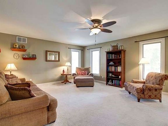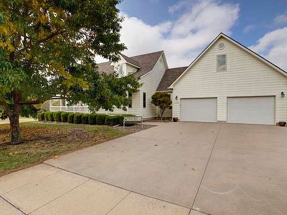 Great opportunity to have small town living in Towanda but within 20 minutes of Wichita. Wonderful 5 bedrooms, 4 bath home sitting on over 1/3 acre. Master bedroom is on the main level with an in-suite bath with separate whirlpool tub and shower, long vanity and a walk-in closet. Two more LARGE bedrooms are at the top of the stairs with their own 11x9 bath. The fourth bedroom is located at the opposite end of the home over the garage which allows for a lot of privacy and is perfect as a guest room, teenager’s room or in-laws suite. The Kitchen is a cooks dream with a large pantry, 2 corner lazy susan cabinets, massive counter top work area, and a gas 5 burner stove. The kitchen and dining are open so family or guests can gather in the dining area or at the eating bar for entertaining. The view-out finished basement includes a family room with a wood pellet stove, the 5th bedroom (which is currently being used as a game room), and an office with built-in desk/counter on 3 walls, plus another full bath. The mud room, main floor laundry and 4th bath are located by the oversized 2 car garage entrance. The garage has insulated garage doors and a man door to the backyard. Enjoy your evenings on the front porch or the large backyard deck. The backyard has raised garden beds at the back of the property, and a fire pit area. The total yard is covered by a sprinkler system. This home has big rooms, large closets and good storage plus all windows are Pella casement with blinds in the middle.