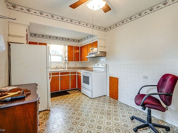 Great curb appeal with this adorable Cape Cod. A covered front porch with white fencing and shutters greets you as you enter your new home. The living room gives you natural sunlight. Side entry door that flows into the eat in kitchen. The 1st floor gives you 2 nicely sized bedrooms and a full bath. Upstairs could be used as a master bedroom and has a sink. A large open basement is great for a recreation room. A 1 car detached garage with room to store your seasonal outdoor accessories. A small patio area is ideal for a grill and patio set. With a little TLC this home will be a great starter home or investment property. Plus a 1 year Home Warranty is included for peace of mind. Call today to schedule your personal tour.