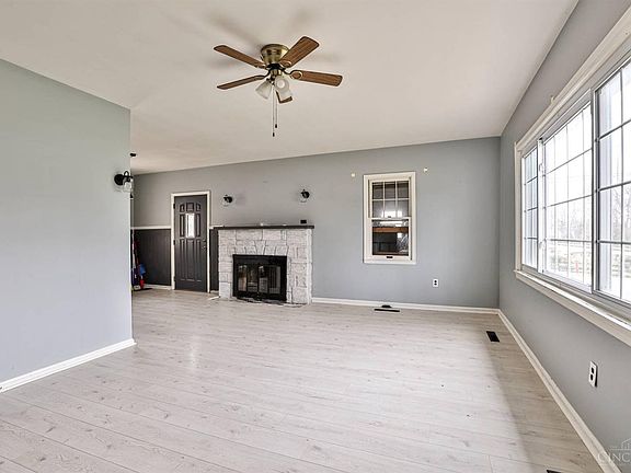 Great potential in this 1500+ sq ft cape cod on oversized lot. Property offers 4+ bedrooms, 3 baths, spacious floor plan with great flow in the main living areas, fireplace, loft, newer flooring, 1-car attached garage with 2 bay doors, multiple patio spaces, and extra driveway & parking space. All appliances in house stay. Full basement under original part of the house. Great access to US 52/US 68. Near to schools and local businesses. Sold as is.