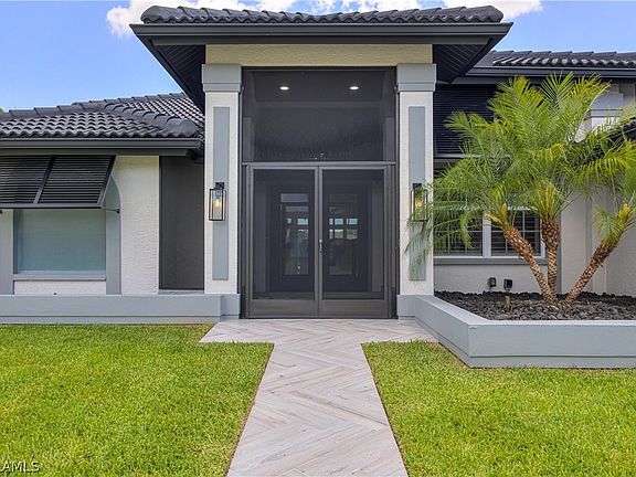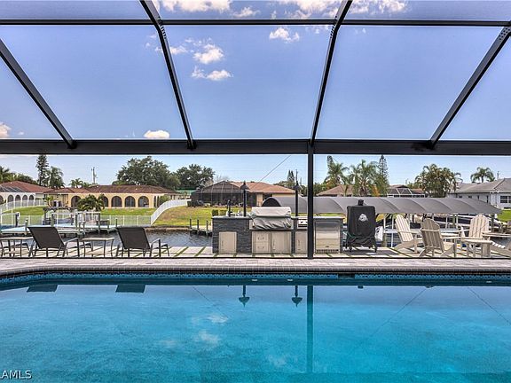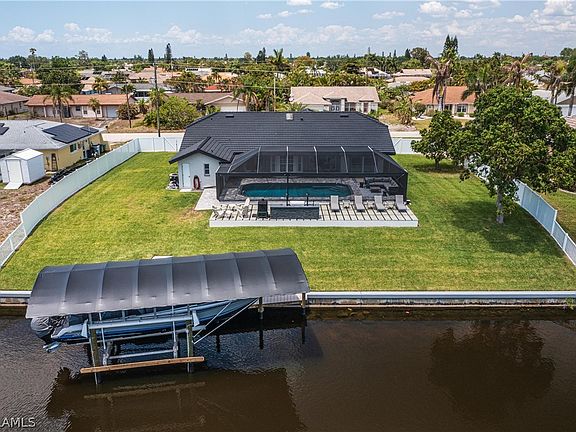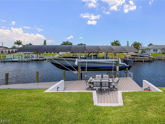Impeccable 4 Bed/3 bath luxurious modern waterfront home features a 20k lb boat lift & is nothing short of a glamorous entertainer's paradise. This stunning residence provides all of the modern ammenities while accentuating the character and charm of the home. With a Chef's dream kitchen featuring stunning Quartzite counters w/ waterfall edges on the oversized island, cathedral ceilings w/shiplap accented w/ custom cypress pine trim are just a few of the interior finishes, all of which are of the highest quality money can buy with no small detail overlooked. Split floorpan features primary suite w/walk in closet and beautiful custom shower & vanities. Guests will enjoy the same luxurious finishes on their wing with no detail overlooked. Newly refinished Pebble Tec Salt H20 heated pool overlooks the fabulous wide canal. Sunrises & sunsets can both be enjoyed from the pristinely manicured lawn and custom patio area. A Brand new panoramic lanai expands the living space to outside seamlessly creating resort-style relaxation space. Indoor/outdoor speaker system. Spacious laundry room. Outdoor kitchen + wet bar x2!! Epoxy garage floor enters into mudroom with custom built ins! Pristine!