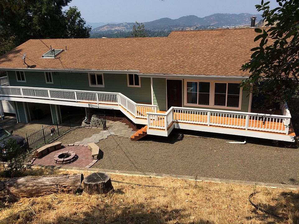 This beautifully remodeled home offers breathtaking views from upper and lower levels. Home offers generous-open living spaces, without compromising any appointments. Open kitchen to living rm, huge family room, large covered deck and pavered patio with fire pit. Excellent neighborhood, large private lot. Huge kitchen. Hardwood flooring. 5 car garage!