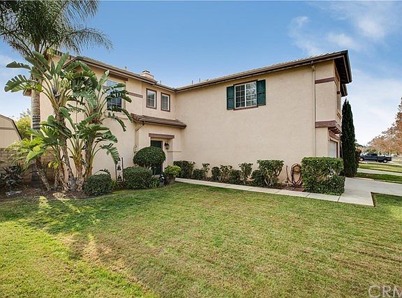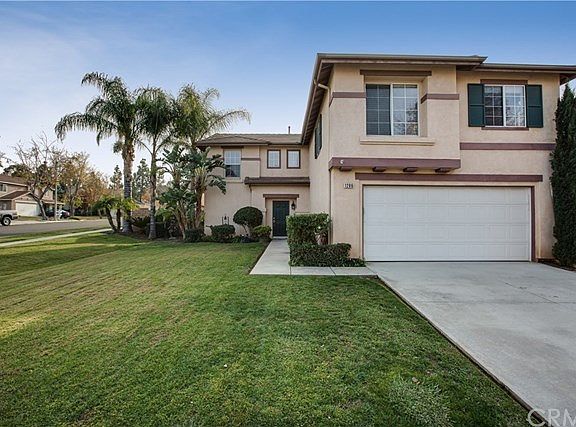 PRICE REDUCTION! Breathtaking 4 bedroom 2.5 bathroom, 2 story home nestled on a corner lot located in the gorgeous city of Corona. Fresh paint and new light Fixtures and faucets in all bathrooms. Tiled entry welcomes visitors to a large living room with natural lighting and crown molding throughout. Downstairs 1/2 bathroom features pedestal sink. Dining room hosts fireplace and new light fixtures leading into the kitchen with abundance of counter space, custom finished cabinetry with hidden hinges, stainless steel appliances, built in microwave, walk in pantry, new sink fixture and tiled counter tops. Carpeted stairwell guides you to the upstairs hallway with built in cabinetry for storage. Master bedroom hosts stunning master bath complete with walk in closet. Three other spacious bedrooms, including custom paint and glowing stars on ceiling in secondary bedroom, faux brick wall in another bedroom and spacious walk in closets. Views from upstairs bedrooms of the snowy topped mountains.Large bonus room upstairs that can be used for many different activities or hobbies. Sliding glass door leads to large beautifully landscaped backyard complete with palm trees, well kept grass, retaining wall with shrubbery and brick patio perfect for relaxation.Large storage shed included with purchase. Home includes a front door light on automatic "dusk to dawn" timer and updated recessed lighting. Liftmaster MyQ garage door, control with your phone. Must see home!
