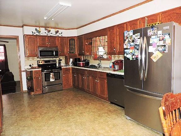3.8 LEVEL ACRES! Space for garden & pool! Brick, 1-level 2+ bdrms, 2 baths, den has 2 closets, kitchen/dining has built-in cabinets. Appliances remain. Det. wired Garage/Workshop has drive-in sheds on each side. Shop also has Loft with full bath, 2 rooms. Blacktop drive & turn-around. Large covered back porch. Enjoy EVERYTHING about this property.