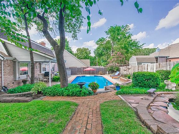 Nestled in a well established neighborhood! Home sits on a beautiful tree filled lot with fescue grass. From the moment you walk in you can appreciate how meticulous it has been taken care of. Wood shutters throughout, Livingroom has a gas woodburning FP, pass through bookshelf, beautiful large plank pine wood floors, Kitchen has unique brick countertops and backsplash, wood beams, ss appliances, window view of the back yard. Step out of the back door to your very own private oasis. Includes a koi pond, vinyl lined sports pool which is 4ft on each end and 5ft in center. Covered Patio, Built-in grill, French drains, Laundry room includes a sink, the bedrooms upstairs are both oversized and shares a Jack-n-Jill bath with separate vanities. At the top of the stairs there is a built in book shelve and a small study nook. Garage has a pass through! Mid-del School District, within walking distance to Regional Park. These homes don't stay on the market long! Schedule your showing today!