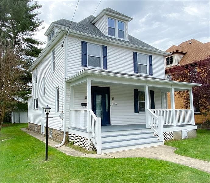 Spectacular 4-5 bedroom home with double lot and one car garage. Spacious living room with original hardwood floors, decorative fireplace, and woodwork. This property offers a formal dining room with pocket doors. Convenient first floor laundry room and half bathroom. New gas forced air furnace with central air, roof, windows, and porches provide low maintenance living. Historic charm with new clean paint, features, carpet, and tile. Finished attic with walk in closets or 5th bedroom. Large unfinished full basement with limitless possibilities. This beautiful kitchen includes stainless steel appliances.