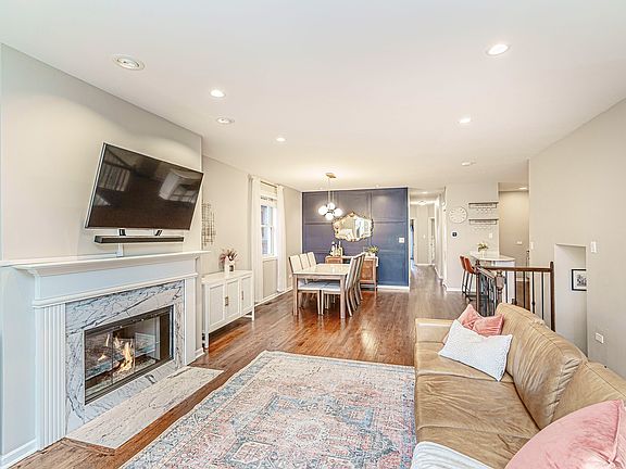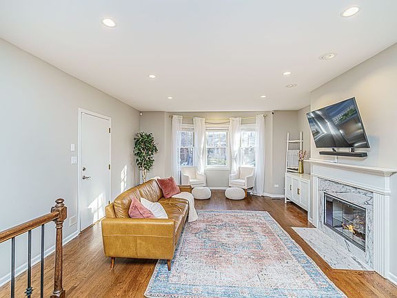 Updated and spacious 2,400 sf 4 bed/3 bath Duplex-Down with an open floor plan and dual primary suites in the heart of Wrigleyville and Southport Corridor. The home opens up to a large living room/dining room featuring a granite surround gas fireplace with a custom mantle and beautiful bay windows on the main level. Contemporary white kitchen boasting with quartz countertops, stainless steel appliances, and peninsula breakfast bar for everyday dining. Ideal duplex down layout with a main level that leads to your 1st full bath off the hallway, king sized primary bedroom, and second bedroom. The primary bedroom is complete with a newly remodeled en-suite bathroom featuring heated floors, dual vanity, updated tile, updated black quartz countertops, and a jetted jacuzzi bathtub. Next to your primary suite is a 2nd bedroom upgraded with an accent board and batten wall. Off your primary suite and second bedroom is your spacious, covered deck perfect for grilling or having your morning coffee, as well as TANDEM exterior parking! The lower level features a second huge living space with updated luxury vinyl plank flooring throughout, extra storage closets, and a mini fridge with built in cabinets/countertop making it a perfect entertaining space. The lower level also features a spacious 2nd primary suite with a renovated ensuite bathroom complete with dual vanity, jetted tub, and marble countertops. The final and 4th bedroom offers a walk in closet with built in shelving and is perfect for an office or nursery. Other features include newly refinished dark stained hardwood floors (2022), an in-unit washer/dryer on main level, look out windows on the lower level, dual zone heating system, newer AC condenser (2020), updated iron stair railings, light fixtures, cordless vinyl blinds, child proof outlets throughout, dimmable light switches, and freshly painted interior walls (2022)! Property is near Wrigley field, Chicago's lakefront, Southport Corridor's shops and restaurants, Jewel Osco, Red and Brown line trains, parks, and so much more!
