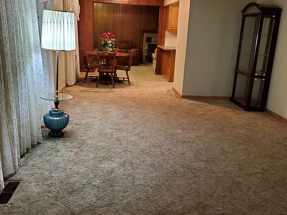 Well maintained 3 bedroom, 1 bath ranch style home. 2 year old roof, fully insulated, vinyl siding with seamless guttering. Updated kitchen which includes refrigerator, stove and portable dishwasher. Kitchen floors are tiled. Beautiful hardwood floors in bedrooms with carpet covering hardwood in living room and dining room. Family room has a fireplace with woodburning insert that has linoleum and carpet. Covered deck and patio with large fenced in back yard. Detached oversized double car garage with an attached shop that used to be a single car garage. This house is spacious and a must see!!