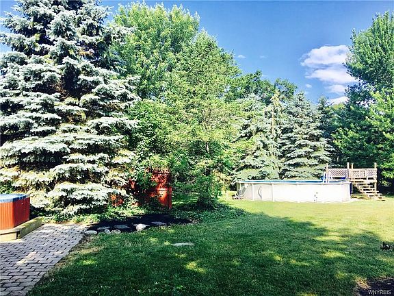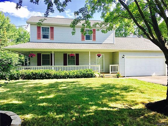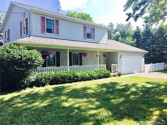 Solid Colonial home in the town of MARILLA with IROQUOIS schools! Enjoy your morning coffee & paper on your wrap around porch! A little TLC and this gem will shine!! Fully fenced yard '10, Water tank '15, newer furnace, roof '07, double doors will lead you to a spacious covered patio porch '14. Take a dip during the day in the pool '12 and enjoy your hot tub in the evening. Enjoy your own staycation with complete privacy surrounded by over 75 mature Pines! For those chilly nights enjoy your wood burning fireplace. Kitchen Appliances '10 and Washer/dryer along with refrigerator in basement stay!