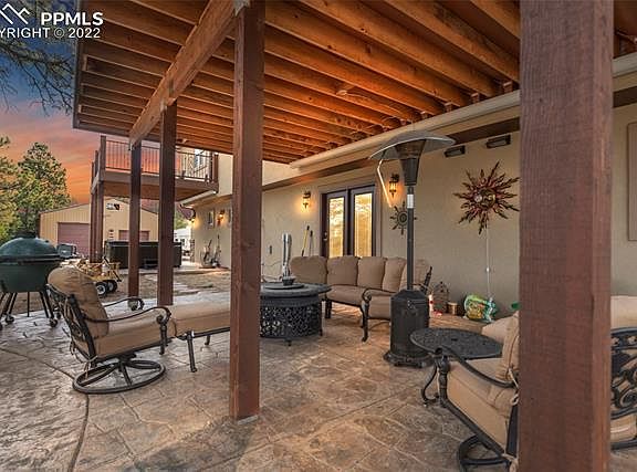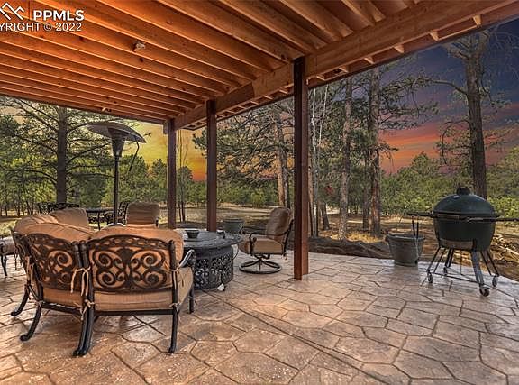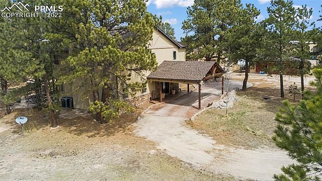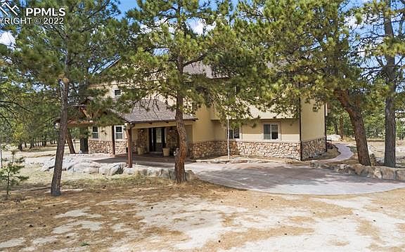 Stunning 5 acre property in Black Forest. Boasting a high quality 2story home with a unique floorplan and two commercial grade Shops totaling 6769 Square feet of Shop space. Greeted by a covered circular drive the home offers all the comforts with 4 bdrms and 4 Baths. The Kitchen alone is a wonderful space for entertaining with a massive granite Island all Stainless steel appliances, 6 burner gas Stove top, pantry, and wine cooler. Make that 2 coolers as there is one in the wet bar in the family room. Office space and stellar primary bedroom with attached 5-piece and walkin. the main level also has a suite with its own bath. Downstairs affords walk outs to covered patios with an abundance of privacy. Upstairs has walk outs to the upper decks. A gas fire place and a wood burning stove help create the warmth and Central AC for the summer. The lot is zoned for horses and mostly covered in pine trees. Built in flower beds, stamped concrete patio, rain gutter system under decks, Privacy and extra space for everything. There are two shop buildings built in 2015 with shop building 1) a 50x40 metal pole barn style shop building with heavy power and concrete floors and 2223 sq. ft. Shop building 2) is a high quality 65x50 clear span metal building with 4564 sq. feet, high quality insulation, heavy commercial grade power, painted concrete floors, a partial 2nd floor area, and a full bathroom with its own septic system. These are professional Shops with commercial Lighting and everything necessary for all projects and endeavors. There is a 1000 gal propane tank buried near the house. The two car garage is original from 1982.