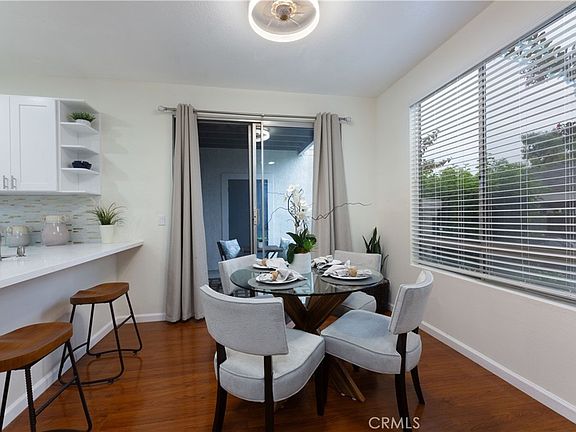 Complete remodel and ready to move in! Beautiful, bright and tastefully updated turn-key air conditioned condo. Conveniently located in a meticulously maintained gated community, this two bedroom residence sparkles. Step into the foyer and the main living area with its welcoming fireplace, handsome stained glass accent window, recessed lighting, access to your private patio through the slider, and gorgeous wood-grain and tile flooring that flows through the home. You’ll be wowed by the completely updated kitchen and breakfast bar. It’s been elegantly redone with Shaker style cabinets, quartz counters, stack-stone backsplash, a sleek undermount stainless steel, single-basin sink, and offers a pantry, plenty of storage and prep space. The dining room features a fancy fan with multi-colored lights and leads out to the enclosed and covered private patio with storage closet. Down the hall, behind double doors, you’ll find a sunny, nice-size secondary bedroom with ample closet space and recessed lighting. Just past the bedroom you'll find a laundry closet equipped with a stackable washer, dryer, and shelving, next down the hall behind a door provides hall access to the large versatile bathroom with shower over tub combo, porcelain tile floor, and Shaker style vanity cabinet. From the bath, a separate door leads to the private dressing area of the large main bedroom where you’ll find a wide vanity beneath a state of the art dimmable LED vanity mirror with electronically adjustable color temperature for creating perfect makeup and an automatic defogging function. Your primary suite encompasses a big walk-in closet with mirrored closet doors, large bedroom and access through a slider to your private patio. Pet friendly community with lots of Greenbelts and walkways. Just steps away from your front door, you’ll have an assigned covered parking space, plenty of guest parking, lovely landscaping with lots of greenery, a tranquil waterfall fountain, and a large pool and spa. This central location provides easy access to nearby attractions like Centennial Park, Mile Square Park (with its golf course, tennis courts, lake, walking paths, and multiple sports fields), South Coast Plaza, a wonderful selection of dining and entertainment, and you’re only minutes from downtown Costa Mesa and the beautiful seaside meccas of Newport Beach and Balboa Island where you can enjoy all the delights of California coastal living. This home has over $20,000 in upgrades! Don't miss out!