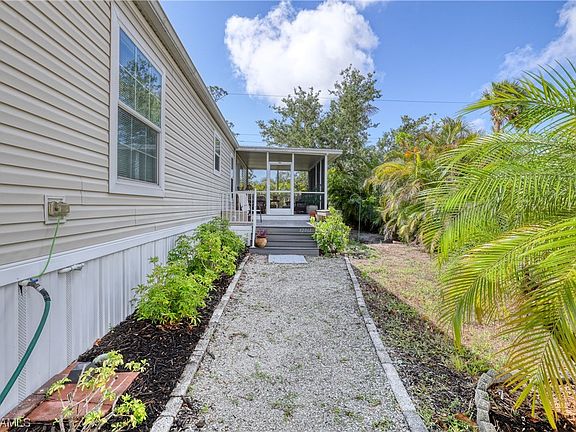Beautiful 2016 Redman home by Champion where you own the amazing site it sits on. Over 1060 ft of living space with 2 bedrooms, 2 baths plus screened in lanai. A great location in the resort area of Sanibel and Fort Myers beaches. The kitchen features a breakfast dinning area and many upgrades that include a stainless steal refrigerator, dishwasher, Microwave, cooktop electric oven and wood floor. Great over sized master bedroom and bath, walk in closet plus double sinks. In home laundry with full size washer and dryer. The community offers a swimming pool for your enjoyment if you join in on the voluntary HOA, it is not mandatory. Restaurants and retail shops are in walking distance. Just minutes from our great beaches Estero and Sanibel Island!! This is a must see with so much to offer!!